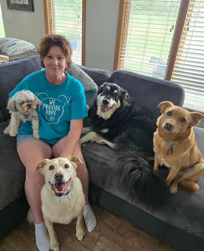 Shonda grew up in Omaha and transplanted to Iowa to attend ISU, graduating with a BS degree in Zoology. Her love for animals has been life long, having owned dogs, a cat, rabbits, hamsters, fish, guinea pigs, and even a chameleon that hitchiked its way back from Texas. She has prior experience showing obedience with her Rottweiler, who was also Canine Good Citizen (CGC) and Therapy Dog International (TDI) certified. Her proudest dog achievements are doing pet therapy work and fostering over 50 dogs since 2021. She currently has 4 dogs which are all rescues, and two of which are Hope alumni.